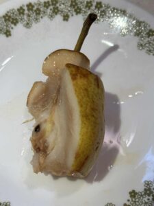 Just yesterday, I found a decent looking pear and when I cut into it, I was disappointed to find that it was almost all bad, except for a thin layer on the surface. It was deceptive, maybe like the forbidden fruit in the Garden of Eden, appealing from the outside, but not good at its core, with the consequence of sin for generations. The same can be ascribed to other things in this world that have an outward appearance of something good, but the result of which can bring a person to ruin. I recall people buying a new shiny vehicle they couldn’t afford that also brought strained relationships. A new move and job prospect that didn’t turn out well at all. Taking something to make you feel better that takes control of your life. A relationship outside of marriage that devastated more lives than they imagined. The list goes on of things that look good on the surface that leave us disappointed in the end. I’d much rather have an overlooked pear with a few blemishes that is delicious and filling. What things have you chased after in life have left you disappointed down the road?